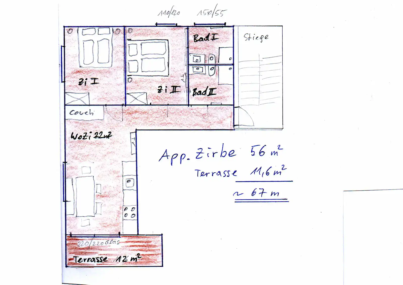 60m2 Apartment für 4 Personen